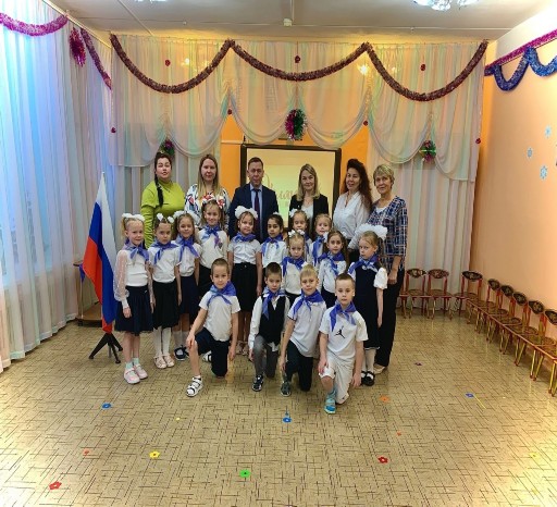Одним из самых волнительных моментов стало вручение галстуков "Орлят" и закладок воспитанникам старших групп.